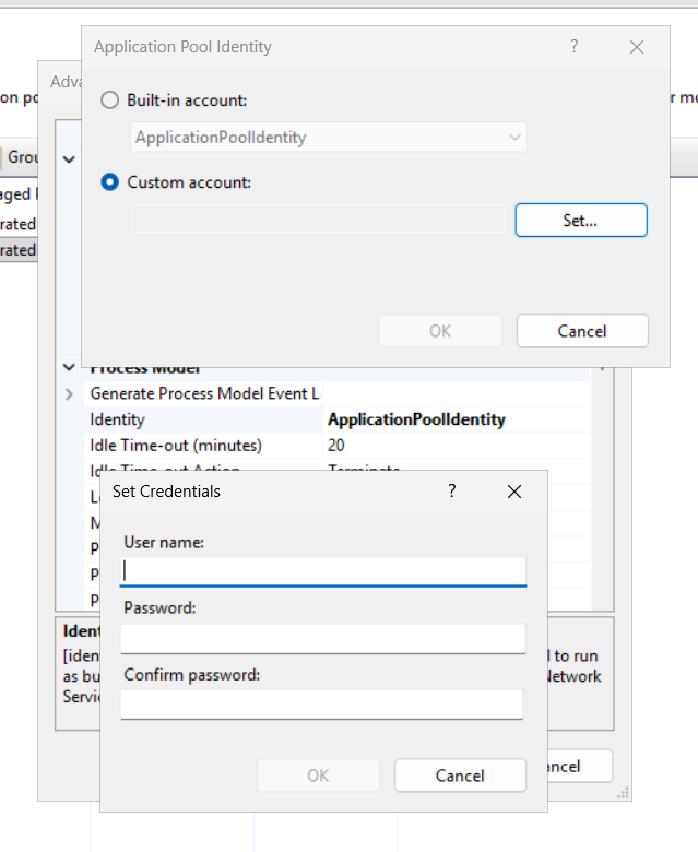In der appConfig.json muss die Windows-Authentifizierung aktiviert werden: